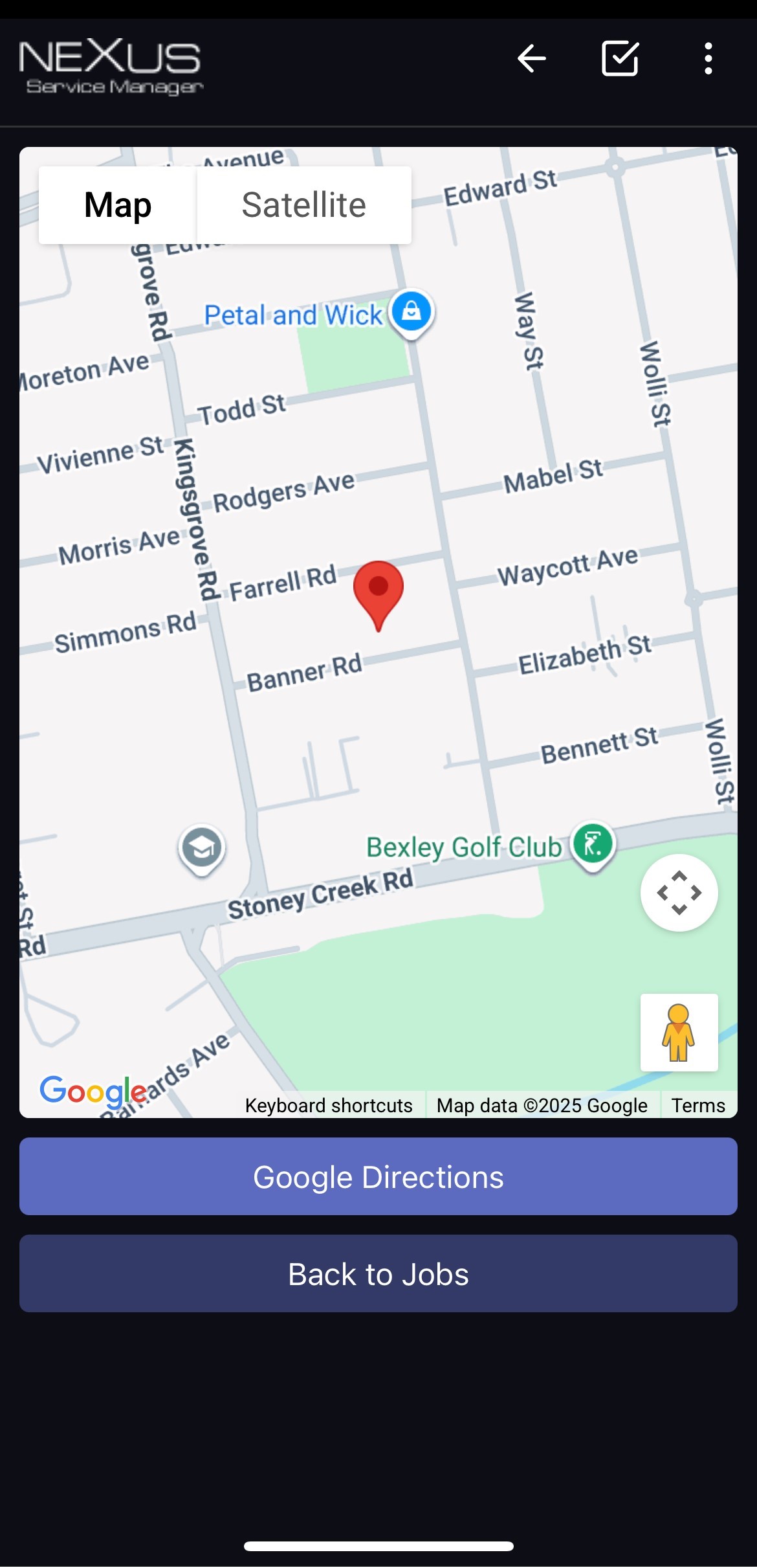 When the site address is clicked a Google map will display. Click on the back arrow to go back to the job.
