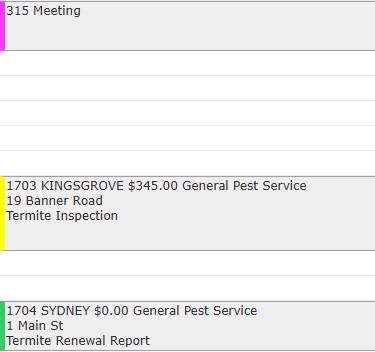 Jobs for the technician logged in will display for the selected date. The date will automatically default to the current date. To preview the job detail simple click on the job. The colour on the left of the job represents the job status.