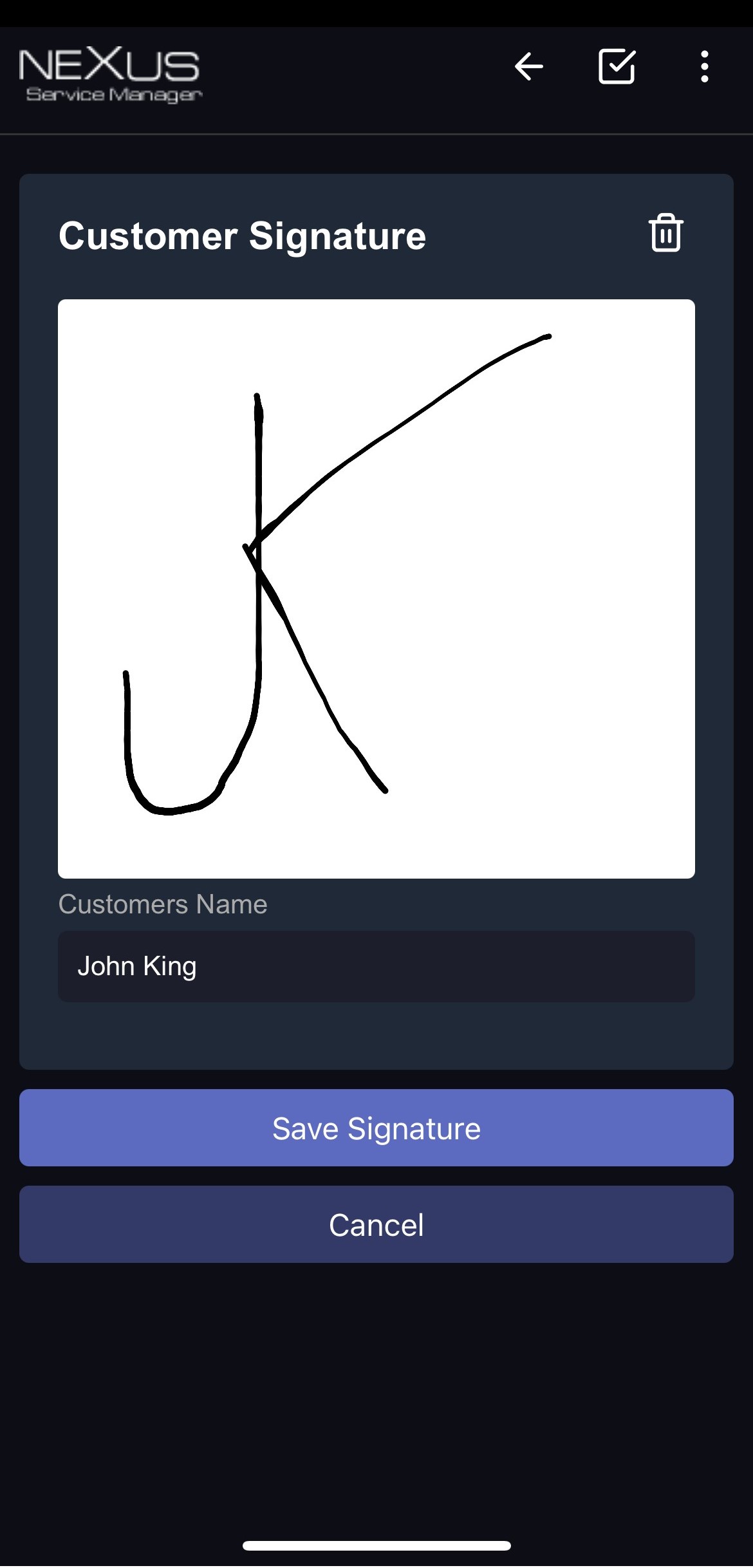 This function is to collect the customer signature when the job is done as proof that the job was successfully completed. The signature can be displayed on a service report.