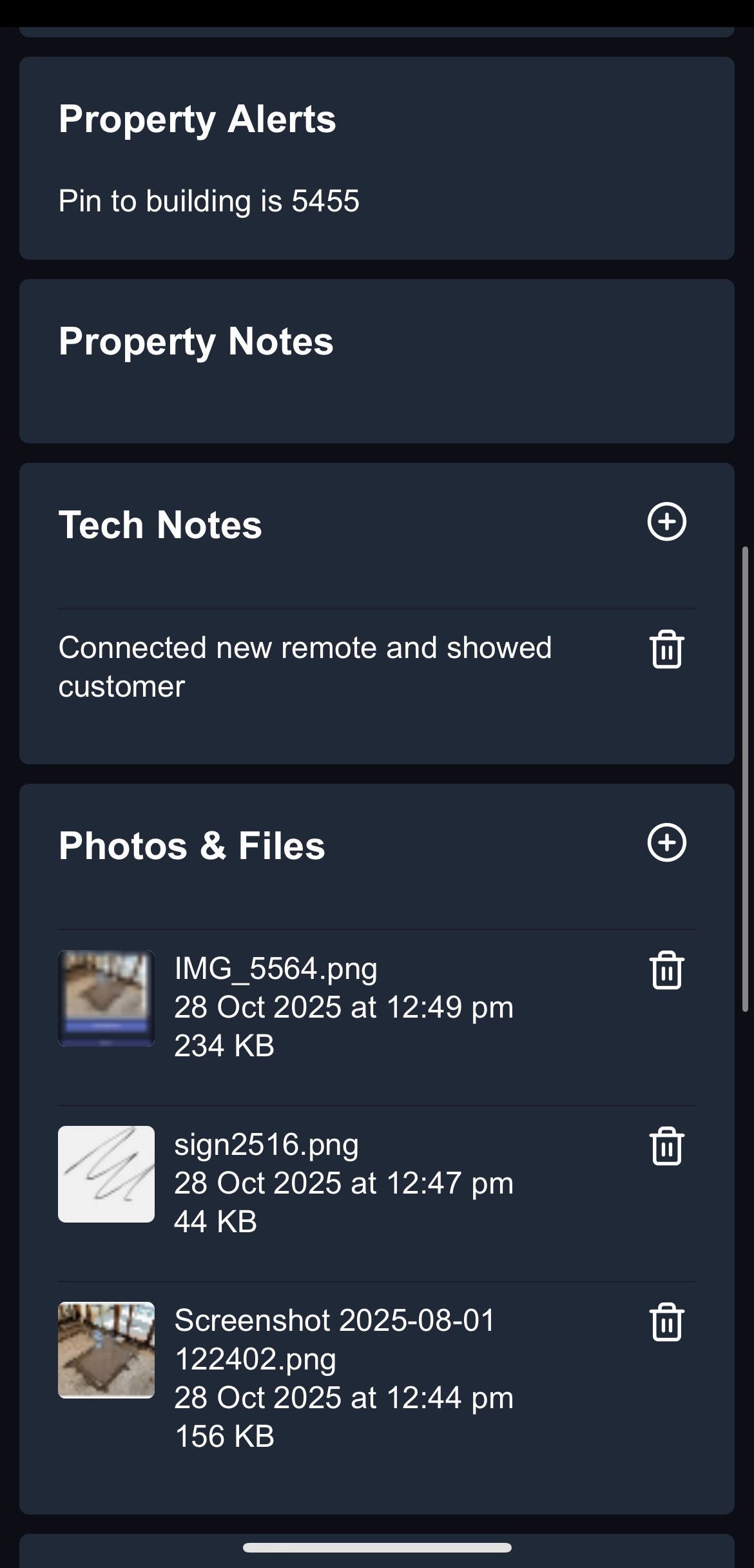 Files can be added from the office and the mobile app. Any file or photos upload will be connected to the current job the technician is in.